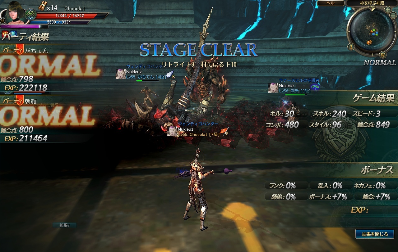 アサリナさん、てんがちんと3人で実装された神殿ヘルへ。