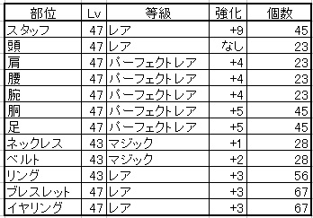 手持ち装備で個数見てみたらこうなった
