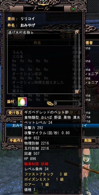 逃げ水村のクエストで、“ギガペデレットの卵 30個”というクエストがございます^^